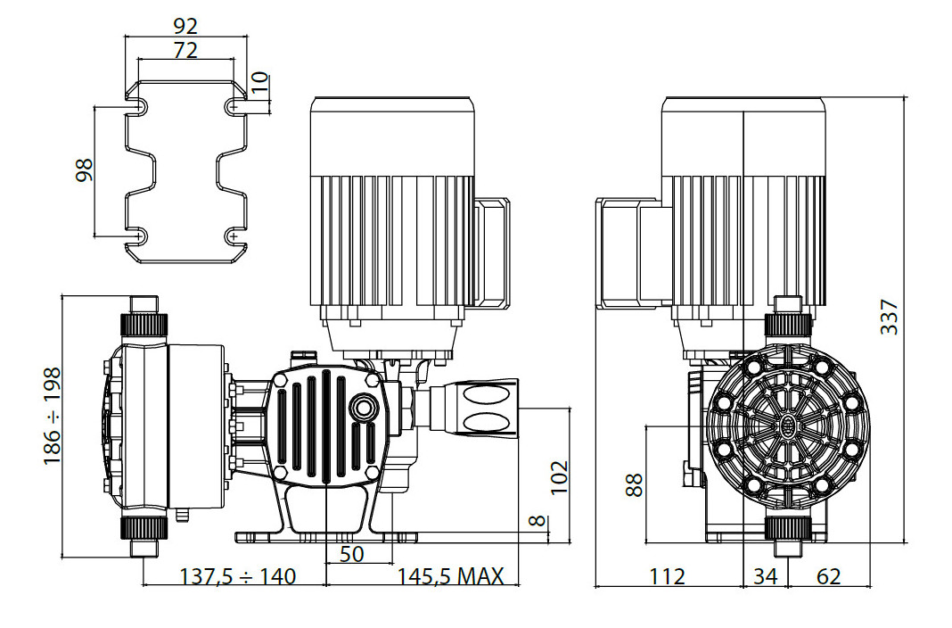 Az AD sorozat nagy áramlási sebességű, robosztus kialakítású, rendkívül megbízható motoros membránszivattyú PTFE membránnal. Alkalmazható vegyszerek nyomás alatti hálózatba történő adagolásához.