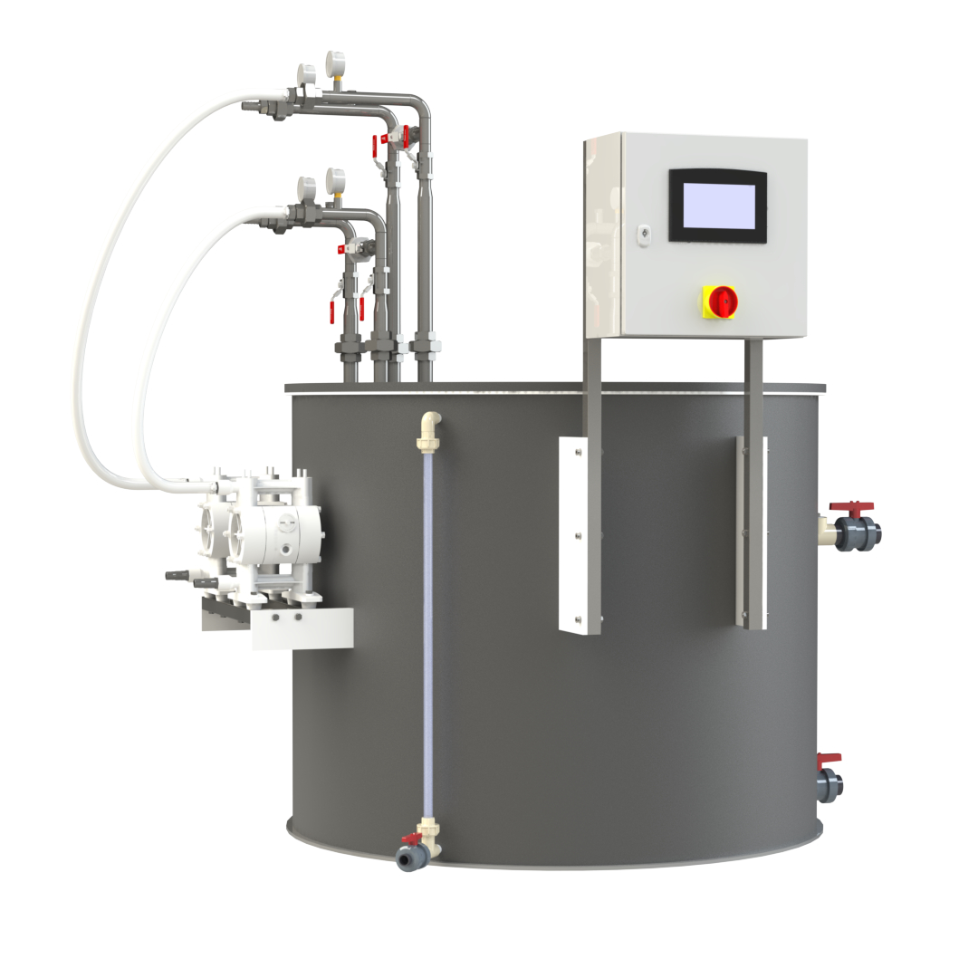 Az AquaCOOL SE-02 berendezés négy fő egységből épül fel. A hűtendő közeget szállító pneumatikus membrános adagolószivattyú(k)ból, a hőcserélő spirál(ok)ból, a hűtőtartályból, illetve a vezérlő egységből (Unitronics).