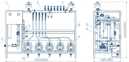 • A berendezés tartalmazza: a magasnyomású szivattyút, vezérlő egységet (PLC), műszereket, szerelvényeket, magasnyomású szerelvényeket