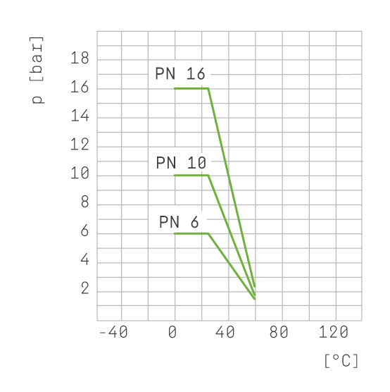 Maximum üzemi nyomás: 16 bar (232 psi) – vízre 20 °C (68 °F)-on (eltérő üzemi körülmények esetén érdeklődjön)