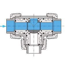 Műanyag 3-utas golyóscsap T-furattal kettős működtetésű pneumatikus meghajtással, EPDM tömítéssel, optikai állásjelzővel. Lúgos, savas, sós közegek, ivóvíz és nagytisztaságú víz továbbítására.