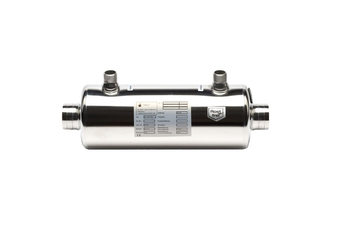- hőcserélő anyaga: AISI 316 – 1.4404 rozsdamentes acél belső és ház + rozsdamentes acél fali rögzítőbilincsek