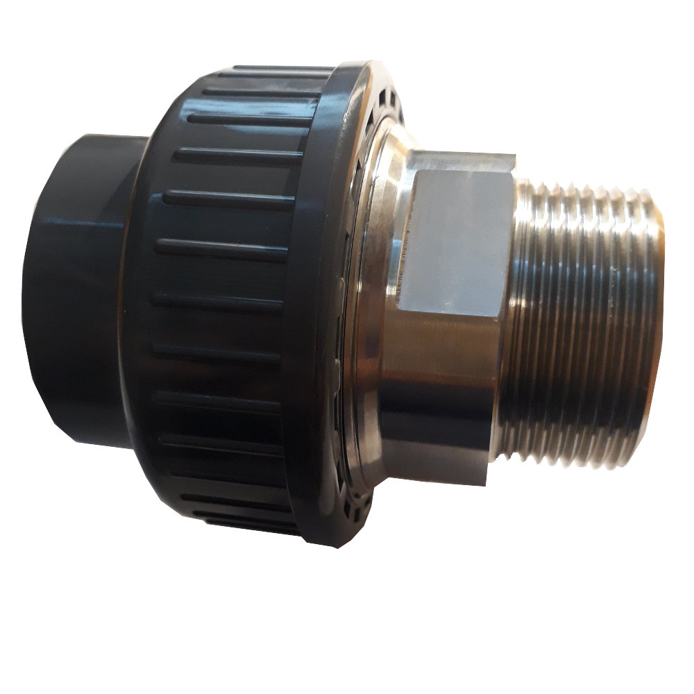 Műanyag hollander rozsdamentes acél külső menettel EPDM O-gyűrűvel, ragasztható tokkal uszodai hőcserélőkhöz hidrogénperoxid alapú fertőtlenítésnél.