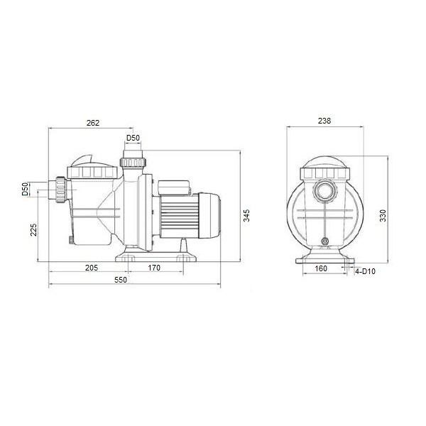 Kedvező ár-érték arányú önfelszívó vízforgató szivattyú medencékhez d50 hollanderes csatlakozókkal.