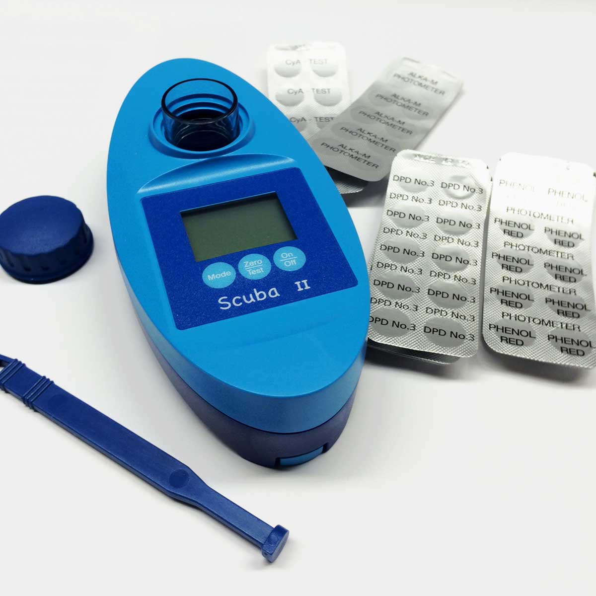 A SCUBA II modern, ergonomikus formatervezésű, vízálló kivitelű, nagy és jól olvasható digitális kijelzővel ellátott medencevíz elemző készülék (fotométer), melynek robosztus tároló dobozzal szállítunk a hosszú élettartam érdekében.