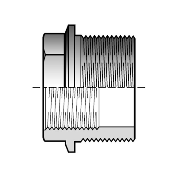 Műanyag szűkítő külső és belső menettel lúgos, savas, sós közegek, ivóvíz és nagytisztaságú víz továbbítására.