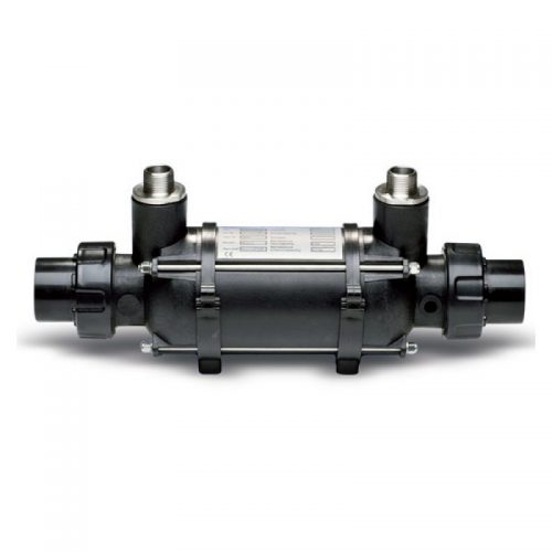 Édes vizű medencékhez, szolárhoz vagy hőszivattyúhoz, 6/4" belső menetes medence oldali, 1" külső menetes fűtés oldali csatlakozásokkal - sós vizes medencéhez nem használható!